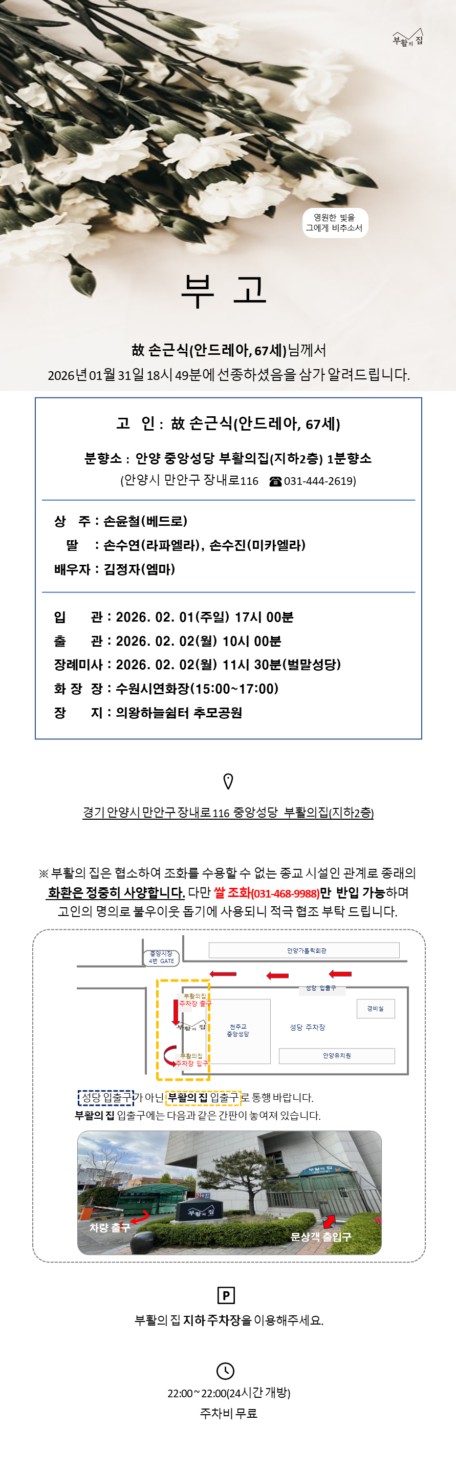 2. 발인 : 26. 2. 2(월) 10:00